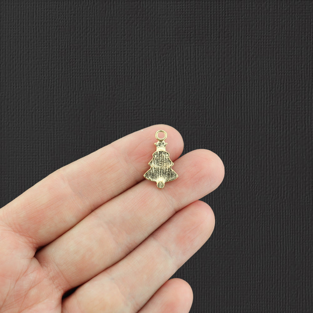 Breloques sapin de Noël dorées, en alliage de zinc et émail. Parfait pour les bracelets, pendentifs, boucles d'oreilles, tirettes de fermeture éclair, signets et porte-clés !