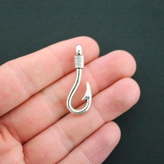 Breloques hameçons argentées antiques, en alliage de zinc. Parfait pour les bracelets, pendentifs, boucles d'oreilles, tirettes de fermeture éclair, signets et porte-clés !