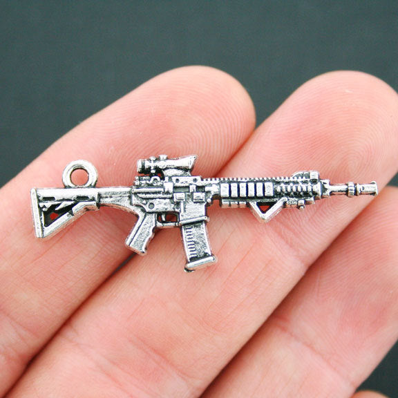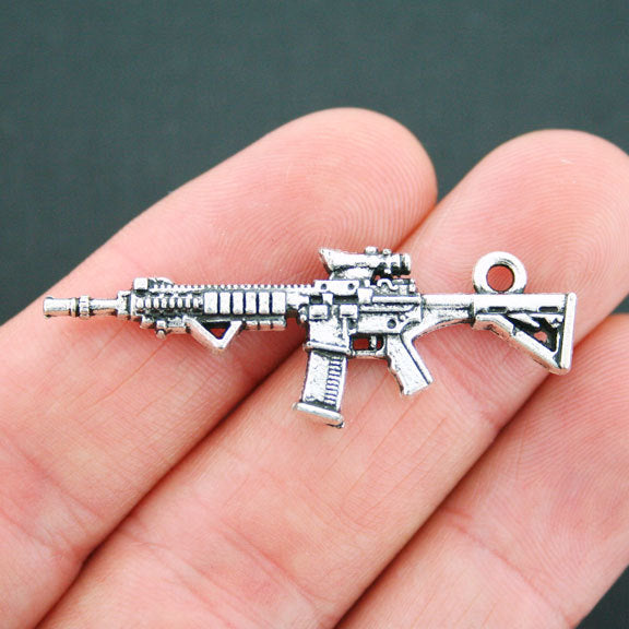 Breloques de ton argent antique de fusil d'assaut, dans un métal en alliage de zinc. Parfait pour les bracelets, pendentifs, boucles d'oreilles, tirettes de fermeture éclair, signets et porte-clés !