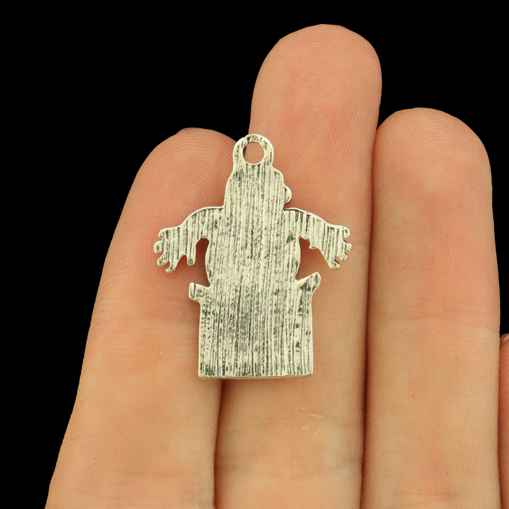 Christmas tree silver tone charms, in a zinc alloy metal.