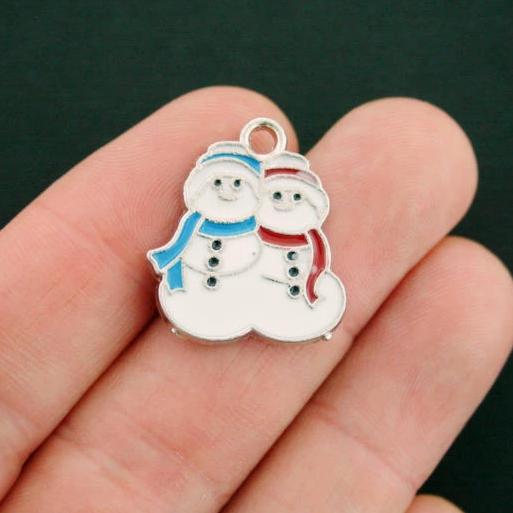 Breloques bonhommes de neige argentées, en alliage de zinc et émail. Parfait pour les bracelets, pendentifs, boucles d'oreilles, tirettes de fermeture éclair, signets et porte-clés !