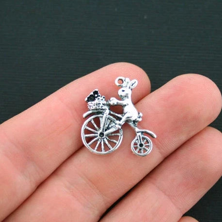 Lapin sur une bicyclette breloques argentées antiques, en alliage de zinc. Parfait pour les bracelets, pendentifs, boucles d'oreilles, tirettes de fermeture éclair, signets et porte-clés !