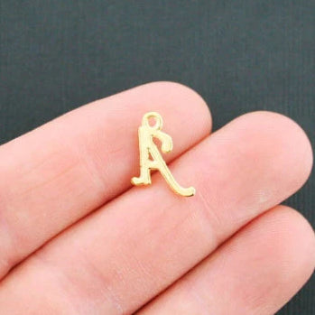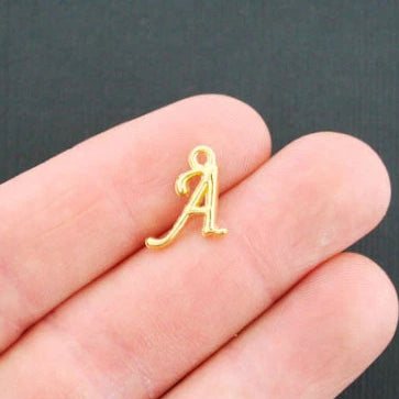Breloques initiales en écriture cursive de la lettre A, couleur or antique, en alliage de zinc. Parfait pour les bracelets, pendentifs, boucles d'oreilles, tirettes de fermeture éclair, signets et porte-clés !