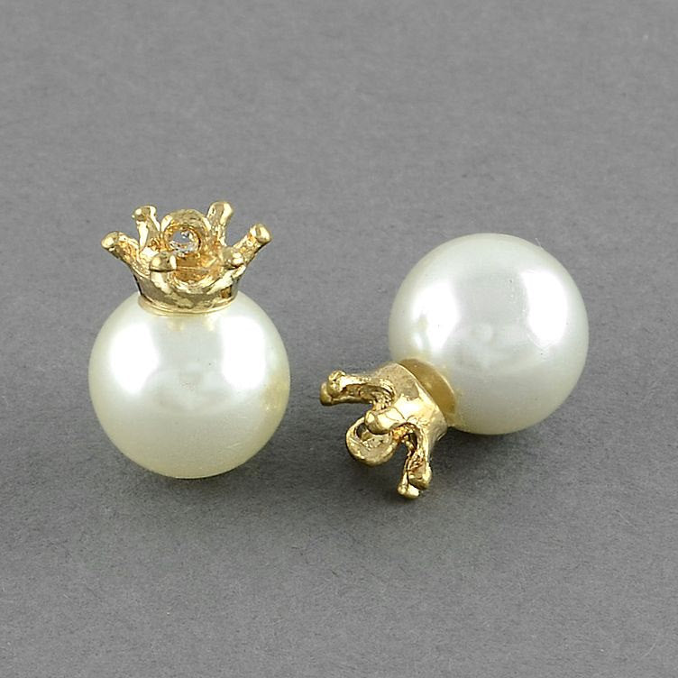 Perle d'imitation avec breloques couronne et boucle dorées, dans un métal en alliage de zinc. Parfait pour les bracelets, pendentifs, boucles d'oreilles, tirettes de fermeture éclair, signets et porte-clés !
