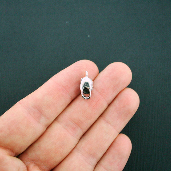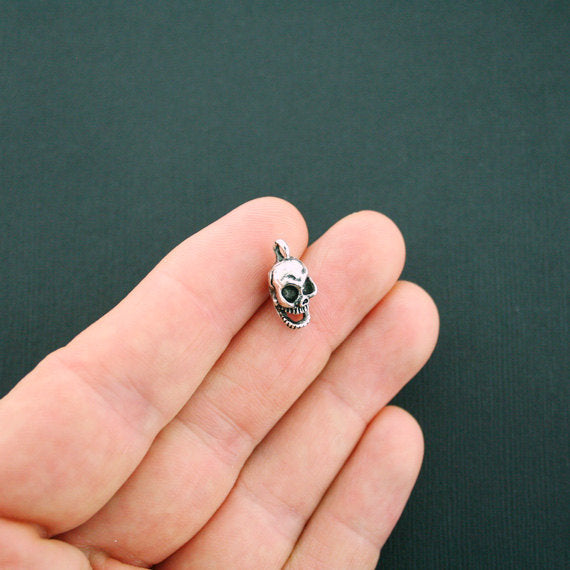 Breloques tête de mort argentée antique, en alliage de zinc. Parfait pour les bracelets, pendentifs, boucles d'oreilles, tirettes de fermeture éclair, signets et porte-clés !