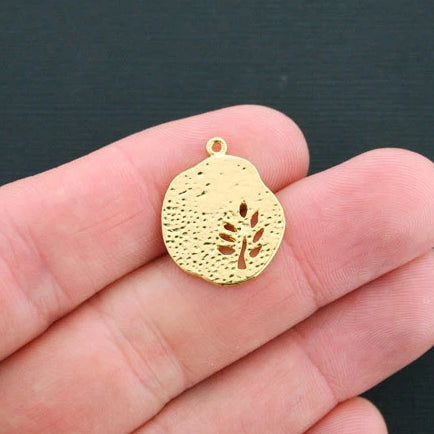 Breloques en forme de feuille d'arbre découpées dans un disque doré antique, en alliage de zinc. Parfait pour les bracelets, pendentifs, boucles d'oreilles, tirettes de fermeture éclair, signets et porte-clés !