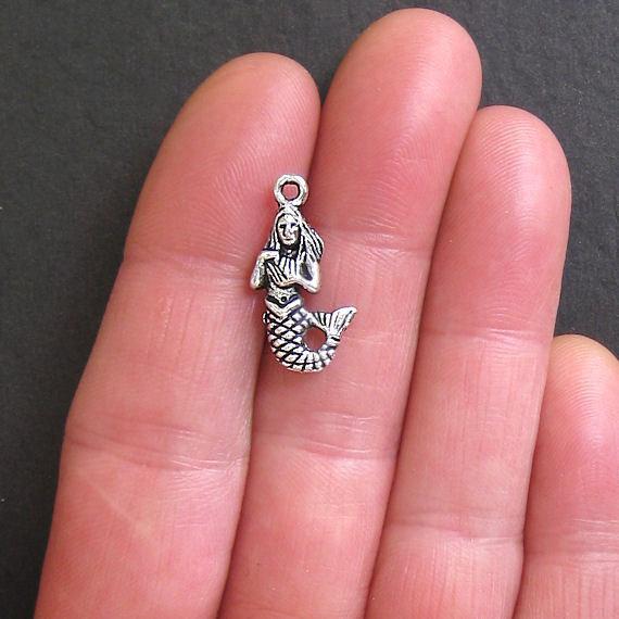 Breloques argentées antiques de sirène, dans un métal en alliage de zinc. Parfait pour les bracelets, pendentifs, boucles d'oreilles, tirettes de fermeture éclair, signets et porte-clés !