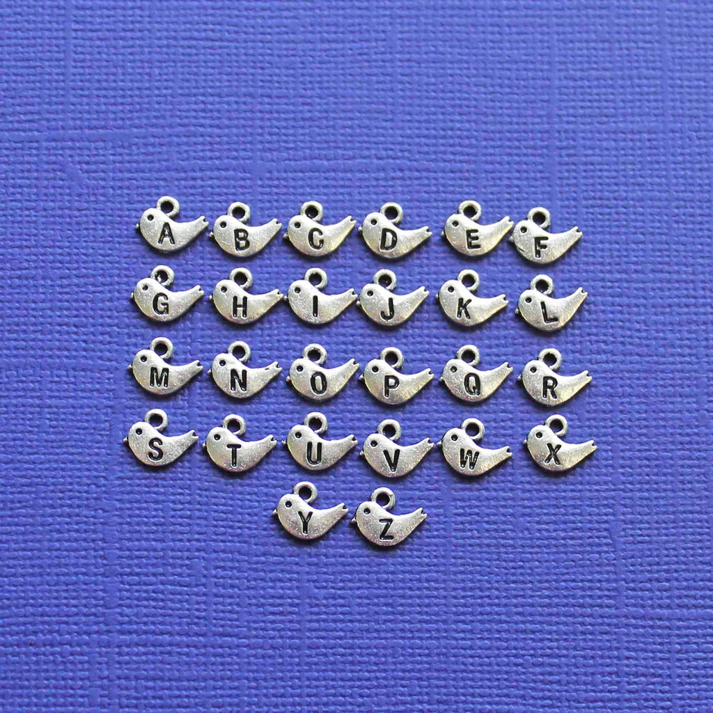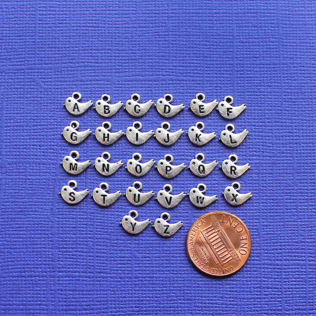 Breloques argentées serties d'initiales de l'alphabet complet, dans un métal en alliage de zinc. Parfait pour les bracelets, pendentifs, boucles d'oreilles, tirettes de fermeture éclair, signets et porte-clés !