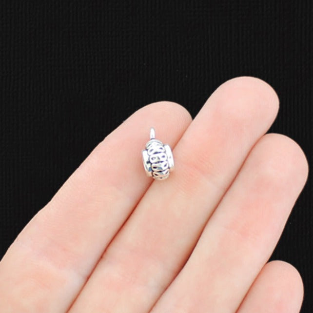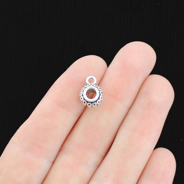 Antique silver tone zinc alloy metal beads in a 11mm x 8mm bail, with a metallic finish.
