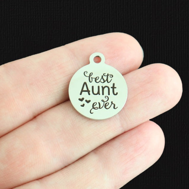 Breloques rondes en acier inoxydable gravées au laser "Best Aunt Ever" , de notre ligne exclusive conçue par Bohemian Findings.
