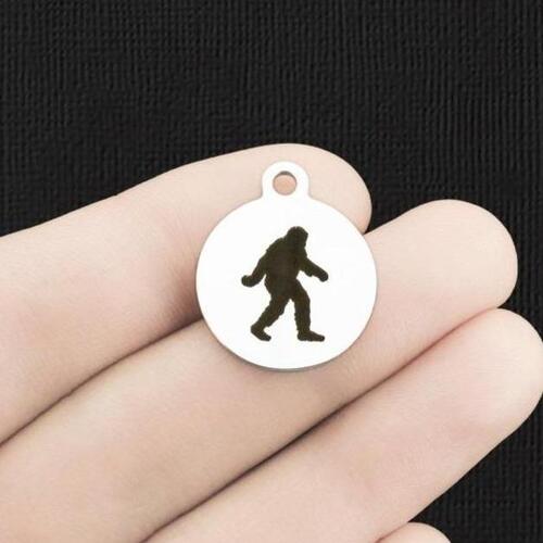 Big foot image breloques rondes en acier inoxydable gravées au laser, de notre ligne exclusive conçue par Bohemian Findings.