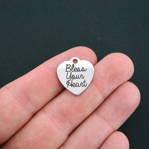 Breloques en acier inoxydable gravées au laser "Bless Your Heart", de notre ligne exclusive conçue par Bohemian Findings.