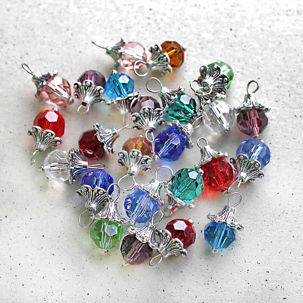 Ensemble d'une année complète de perles de verre à facettes avec pierre de naissance et capuchon en alliage de zinc argenté. Parfait pour les bracelets, les boucles d'oreilles, les tirettes de fermeture éclair, les signets et les porte-clés !