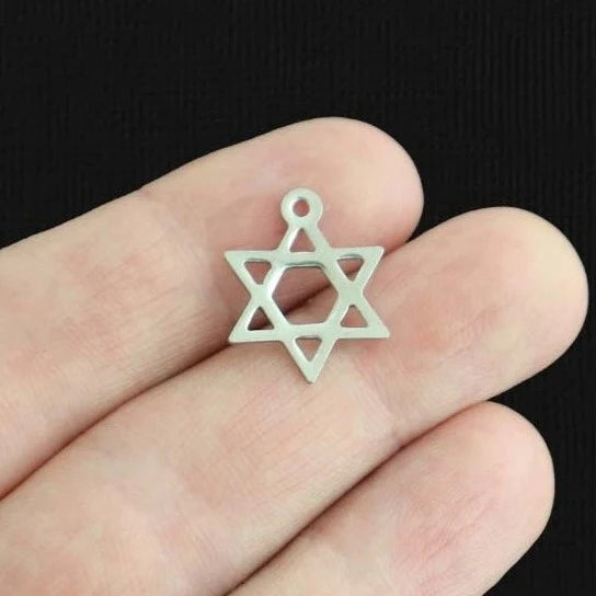 Breloques étoile de David argentées, en acier inoxydable 201. Parfait pour les bracelets, pendentifs, boucles d'oreilles, tirettes de fermeture éclair, signets et porte-clés !