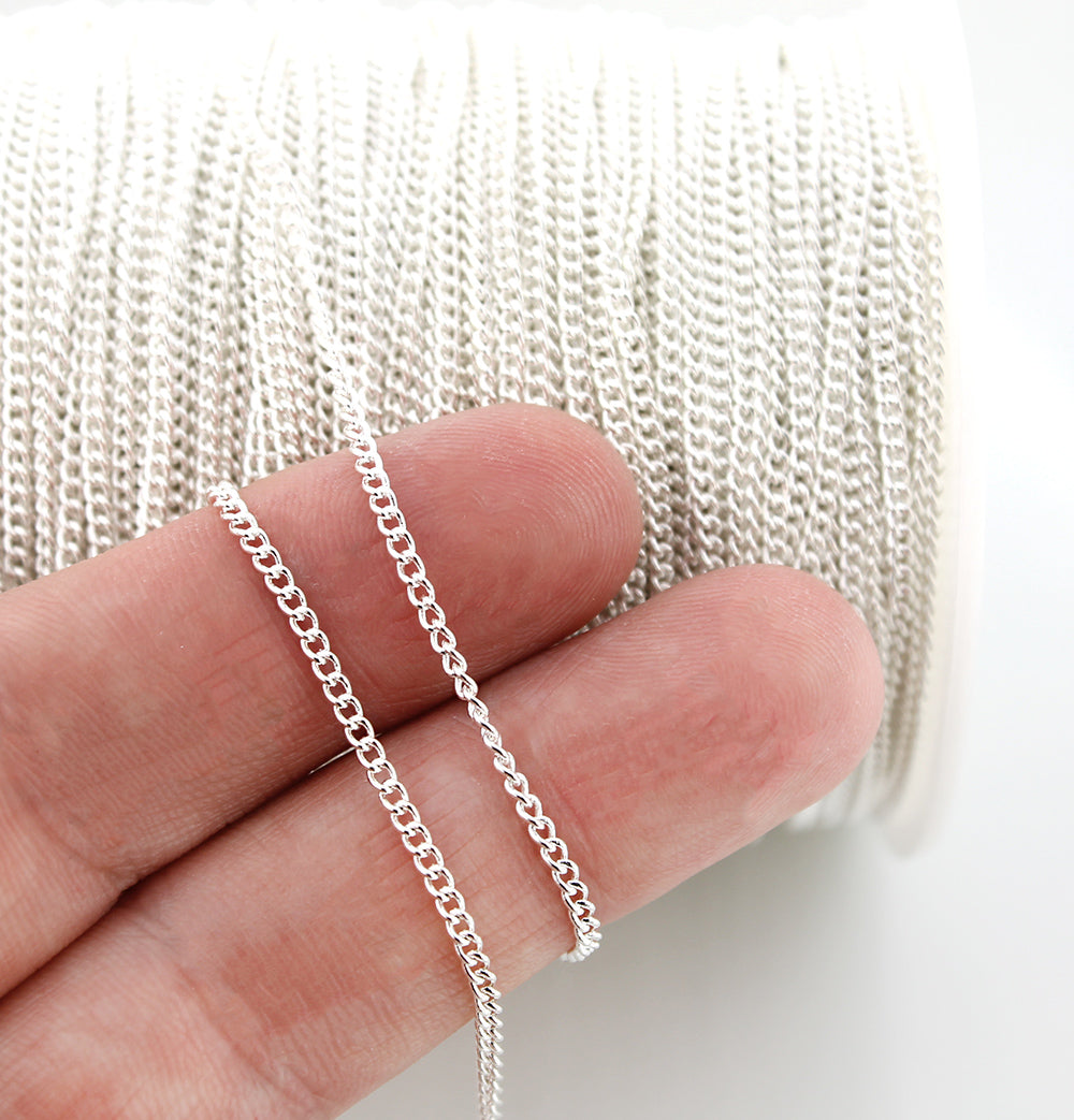 Chaîne de collier argentée en vrac en laiton plaqué, la base parfaite pour votre prochaine création de bijoux ! Fabuleux pour tout projet nécessitant des longueurs de chaîne uniques, comme des boucles d'oreilles ou des bracelets de cheville, ou pour créer vos propres colliers !