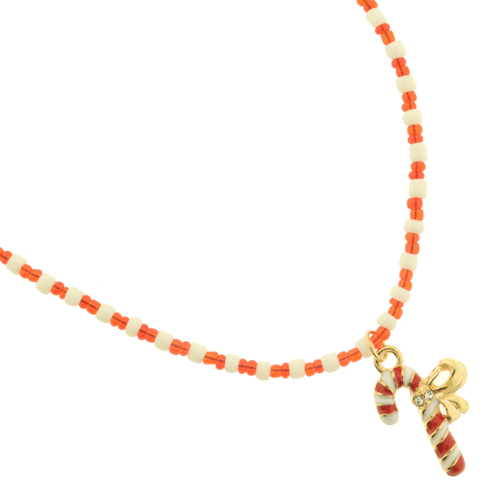 Be the life of the party with this Christmas necklace! Made of red and white seed beads and finished with the charm of your choice. A great base for a Christmas necklace!