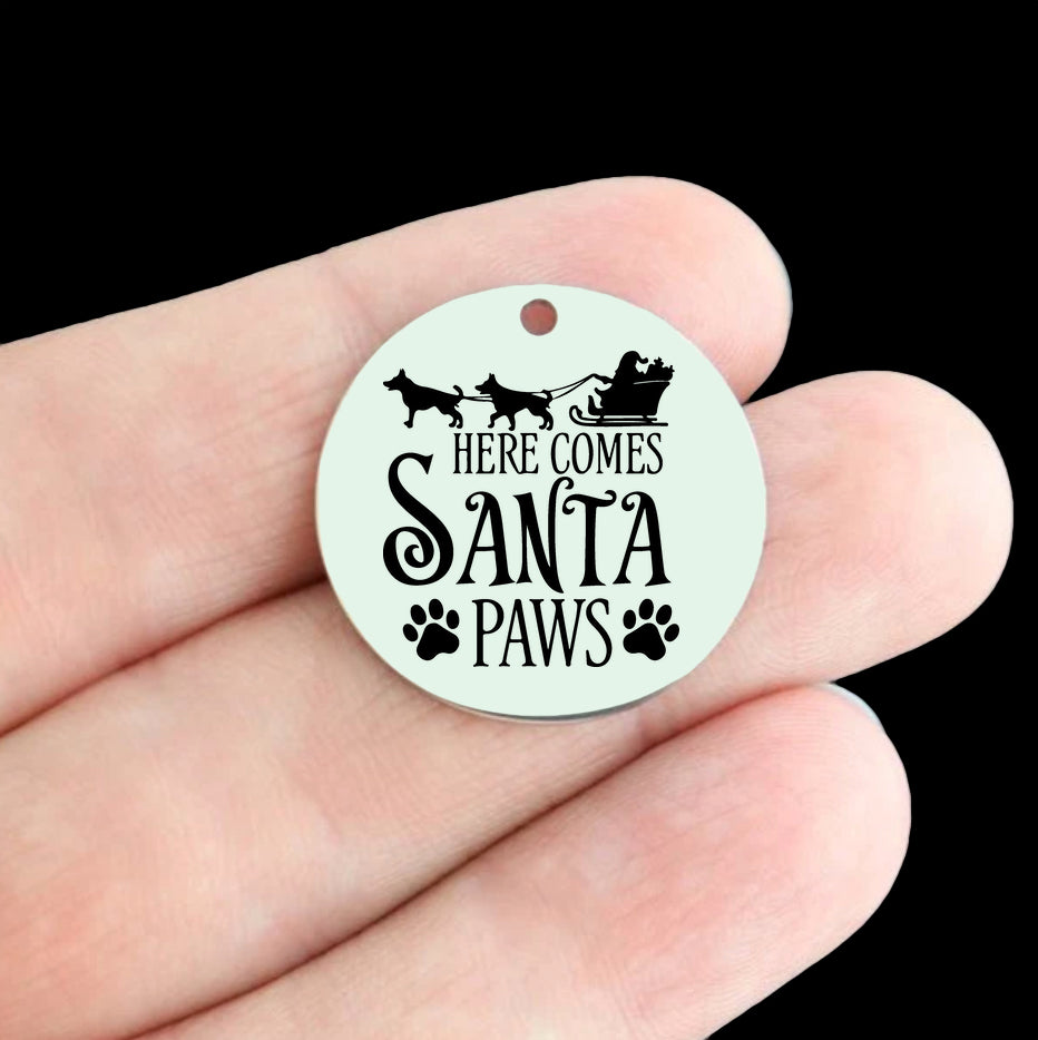 "Ma couleur préférée est les lumières de Noël" breloques rondes en acier inoxydable gravées au laser avec image de lumières scintillantes, de notre ligne exclusive conçue par Bohemian Findings.