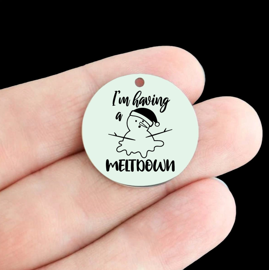 "Ma couleur préférée est les lumières de Noël" breloques rondes en acier inoxydable gravées au laser avec image de lumières scintillantes, de notre ligne exclusive conçue par Bohemian Findings.