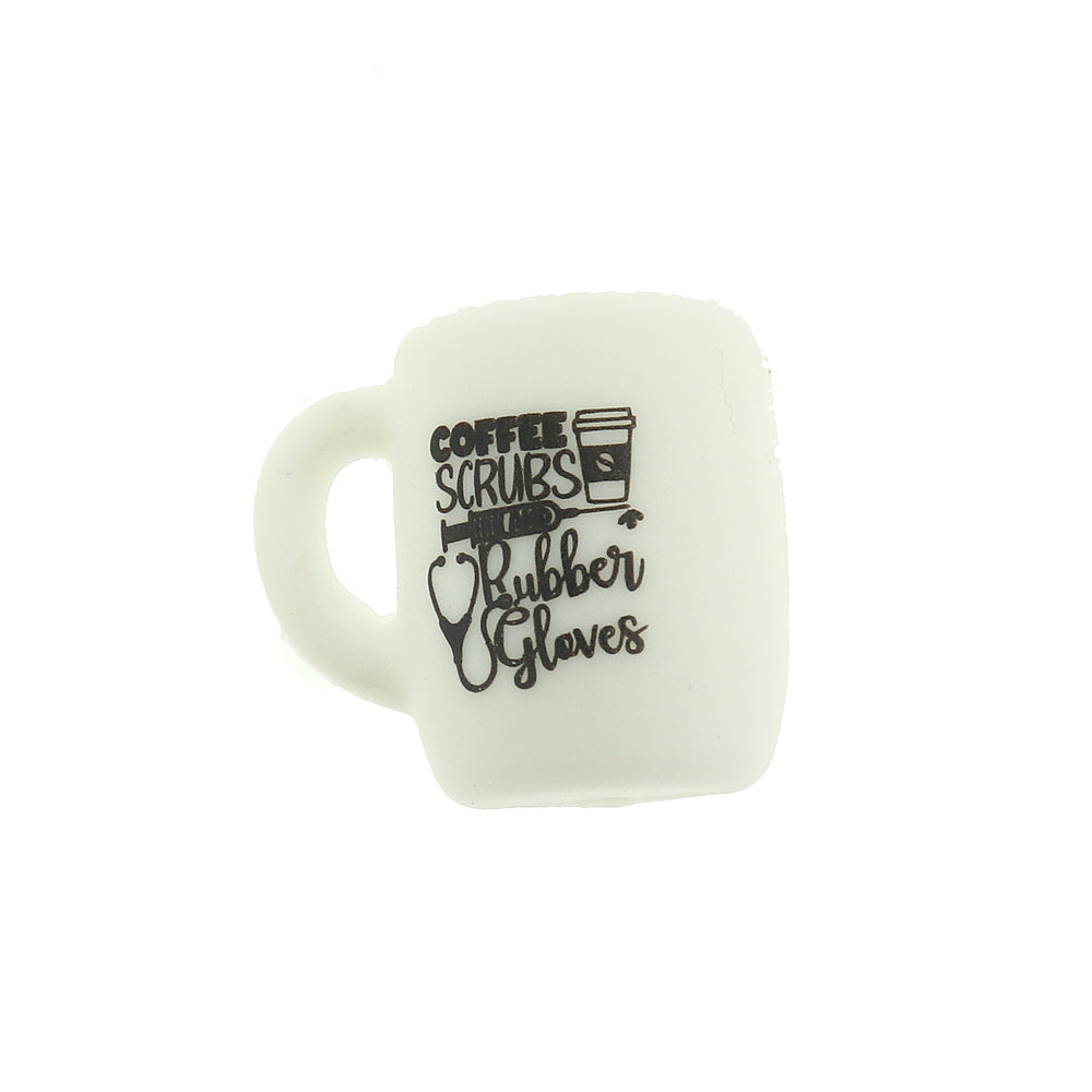 Check out these unique "Coffee Scrubs Rubber Gloves" coffee mug with coffee cup, syringe and stethoscope silicone focal beads! Perfect to add a special touch to any project.