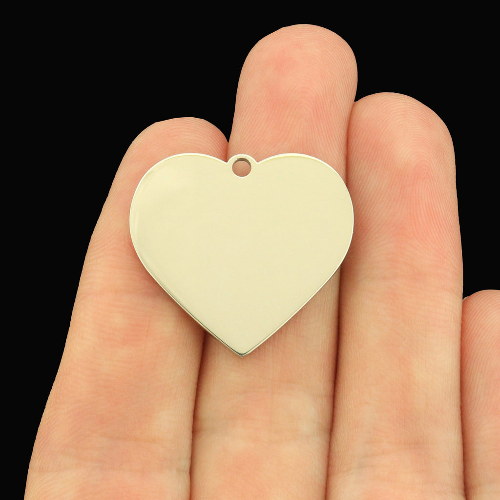 Les breloques sont fabriquées en acier inoxydable de haute qualité poli à la main des deux côtés. L'acier inoxydable est hypoallergénique et ne ternit pas. Le lettrage ne se décolore pas, car nous n'utilisons pas de peintures en aérosol ou de produits chimiques dans notre processus de gravure au laser.
