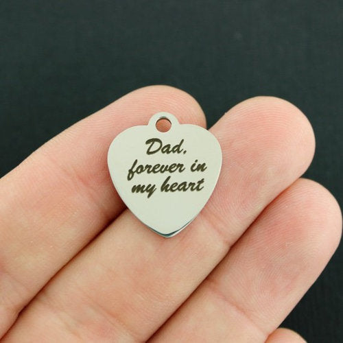 Breloques en acier inoxydable gravées au laser "Papa, pour toujours dans mon cœur", de notre ligne exclusive conçue par Bohemian Findings.