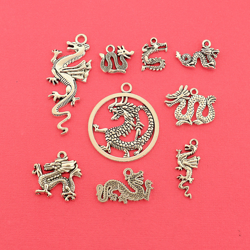 Dragon Collection Antique Silver Tone 9 Different Charms - COL437H