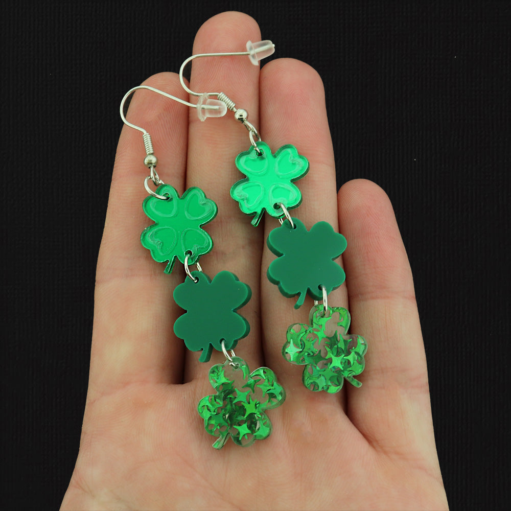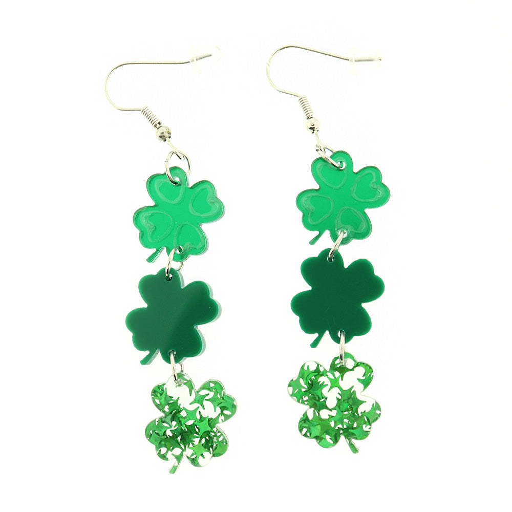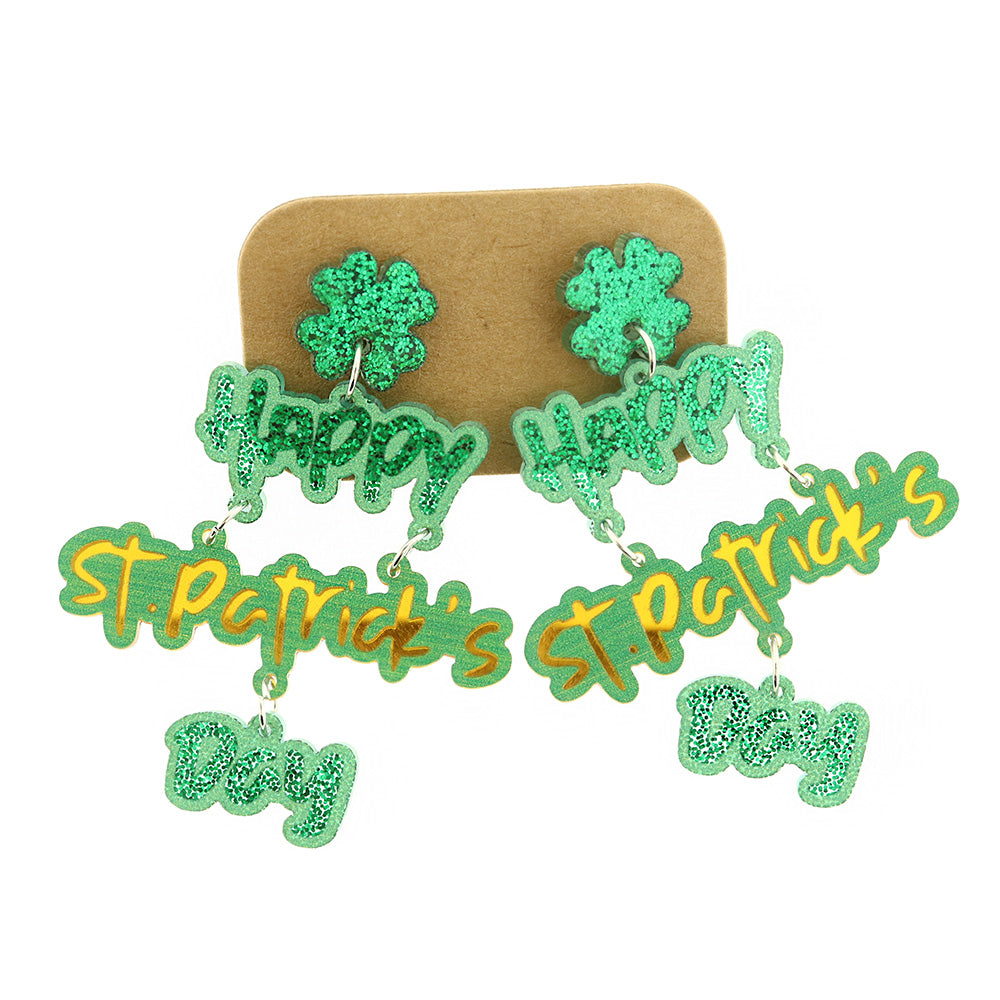 Enamel St. Patricks Day Leprechaun Dangle Earrings - Gold Tone Stud Style - 2 Pieces 1 Pair - ER708
