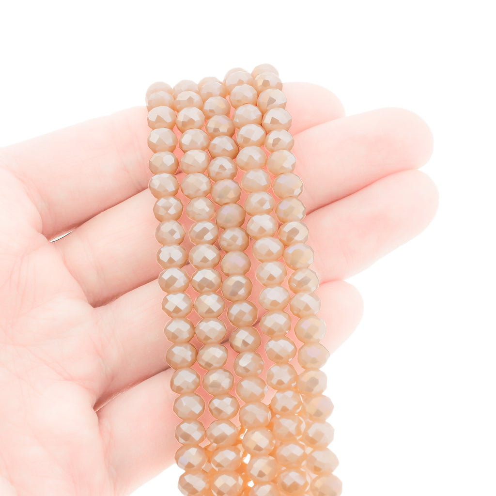 Faceted glass beads in a 6mm x 4mm round with a polished finish. Available in 5 different colors.