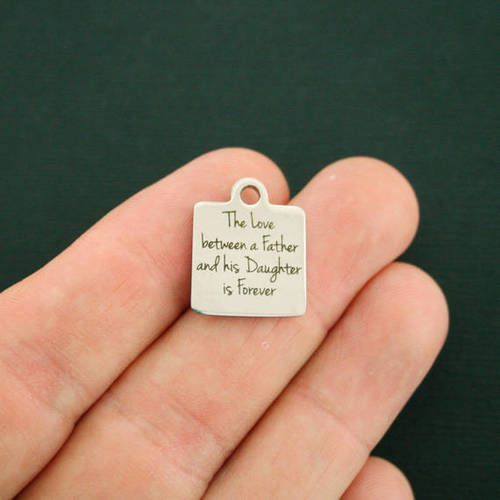 "L'amour entre un père et sa fille est pour toujours" charms carrés en acier inoxydable gravés au laser, de notre ligne exclusive conçue par Bohemian Findings.