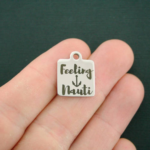 Breloques carrées en acier inoxydable gravées au laser "Feeling Nauti" avec image d'ancre, de notre ligne exclusive conçue par Bohemian Findings.
