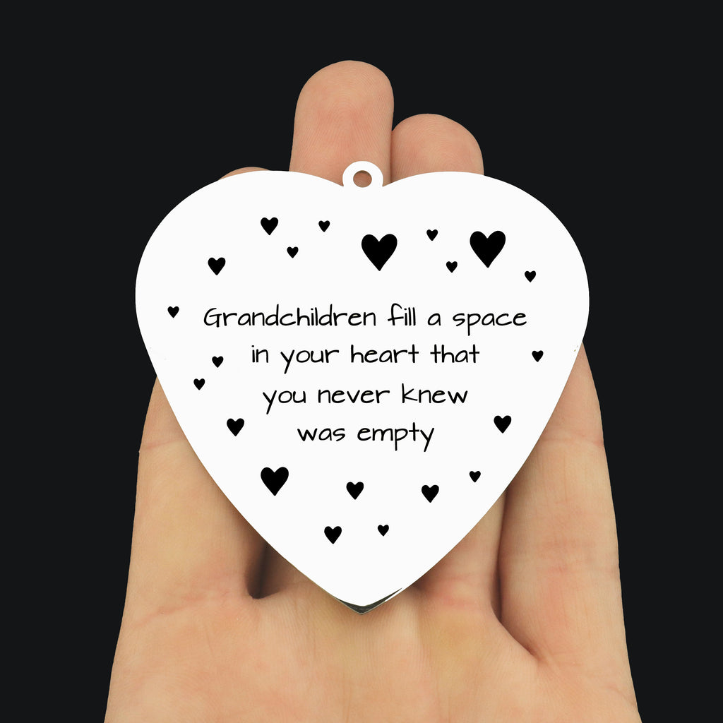 Take a look at these custom stainless steel Christmas ornaments! They are laser engraved with "Grandchildren fill a space in your heart that you never knew was empty".