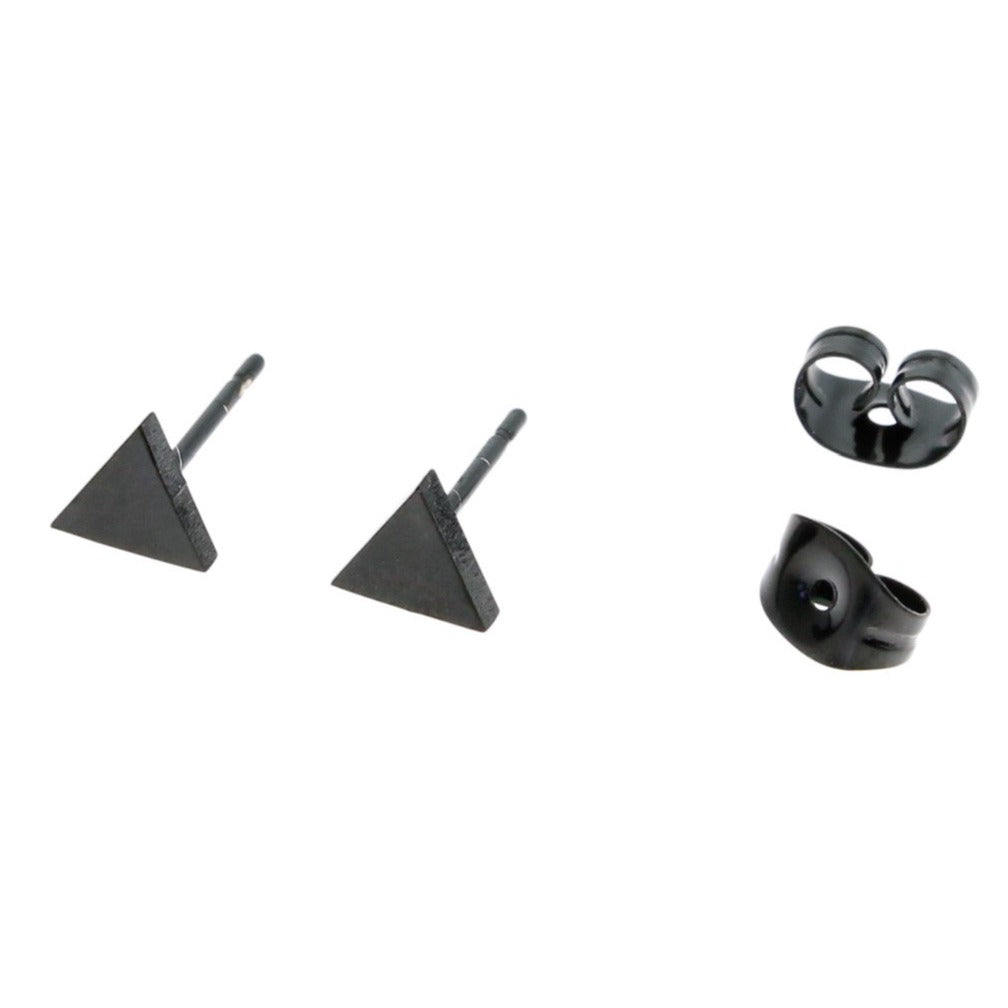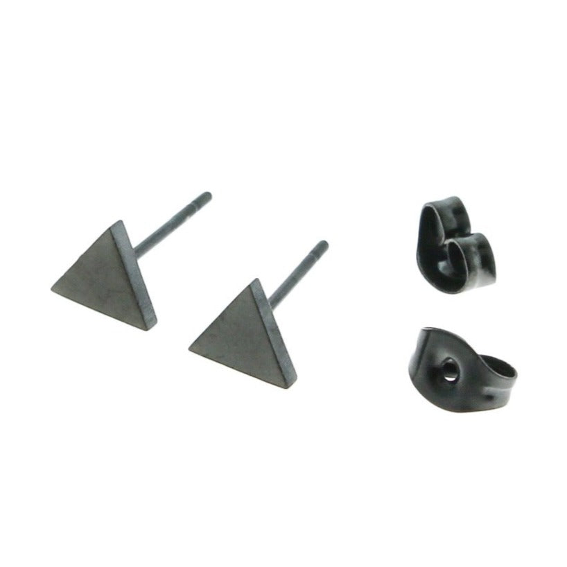 Boucles d'oreilles clous d'oreilles en métal noir dans un triangle géométrique minimaliste en acier inoxydable, parfaites pour un look simple !