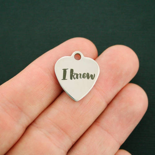 Breloques cœur en acier inoxydable gravées au laser "I Know", de notre ligne exclusive conçue par Bohemian Findings.