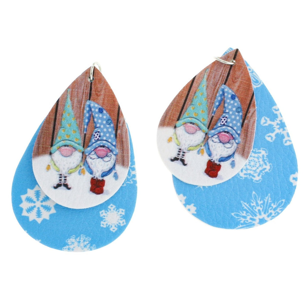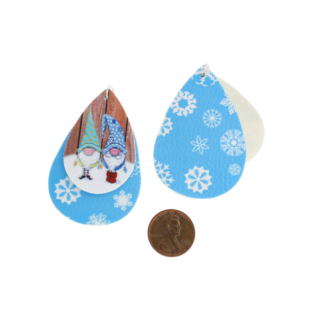 Pendentifs bleus en forme de larme avec des flocons de neige et des gnomes de Noël, en similicuir. Parfait pour les boucles d'oreilles, les pendentifs et plus encore !