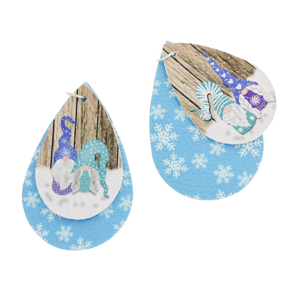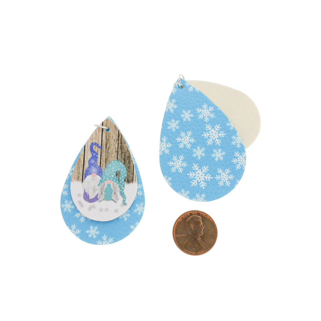 Pendentifs en forme de larme bleue avec des flocons de neige et des gnomes de Noël, en similicuir attachés avec un anneau en alliage de fer argenté. Parfait pour les boucles d'oreilles, les pendentifs et plus encore !