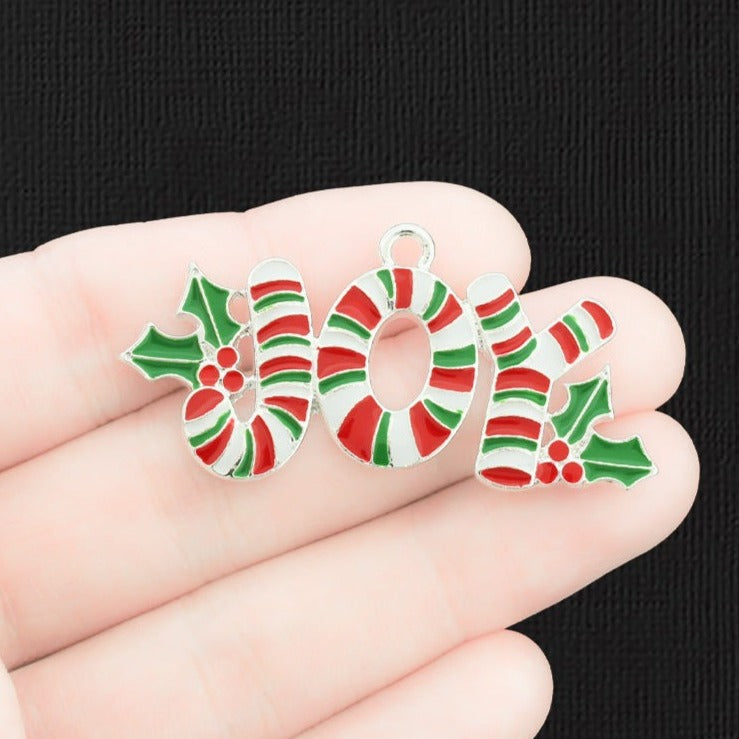Canne en bonbon couleur "Joy" avec des breloques argentées en forme de gui, en alliage de zinc et émail. Parfait pour les bracelets, pendentifs, boucles d'oreilles, tirettes de fermeture éclair, signets et porte-clés !