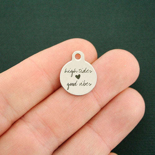 "Le lac appelle, je dois y aller" charms ronds en acier inoxydable gravés au laser avec image de l'eau, de notre ligne exclusive conçue par Bohemian Findings.