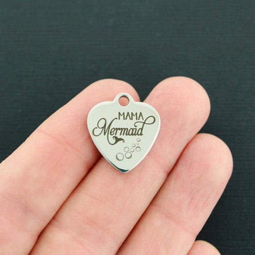 Breloques en acier inoxydable gravées au laser "Mama Mermaid" avec des images de queue et de bulles, de notre ligne exclusive conçue par Bohemian Findings.