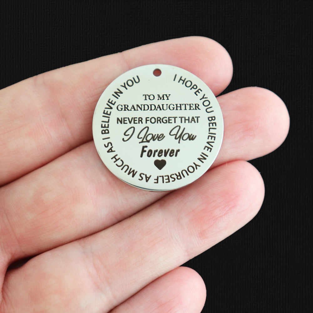 "Parfois, je lève simplement les yeux, souris et dis "Je sais que c'était toi" des breloques rondes en acier inoxydable gravées au laser, de notre ligne exclusive conçue par Bohemian Findings.