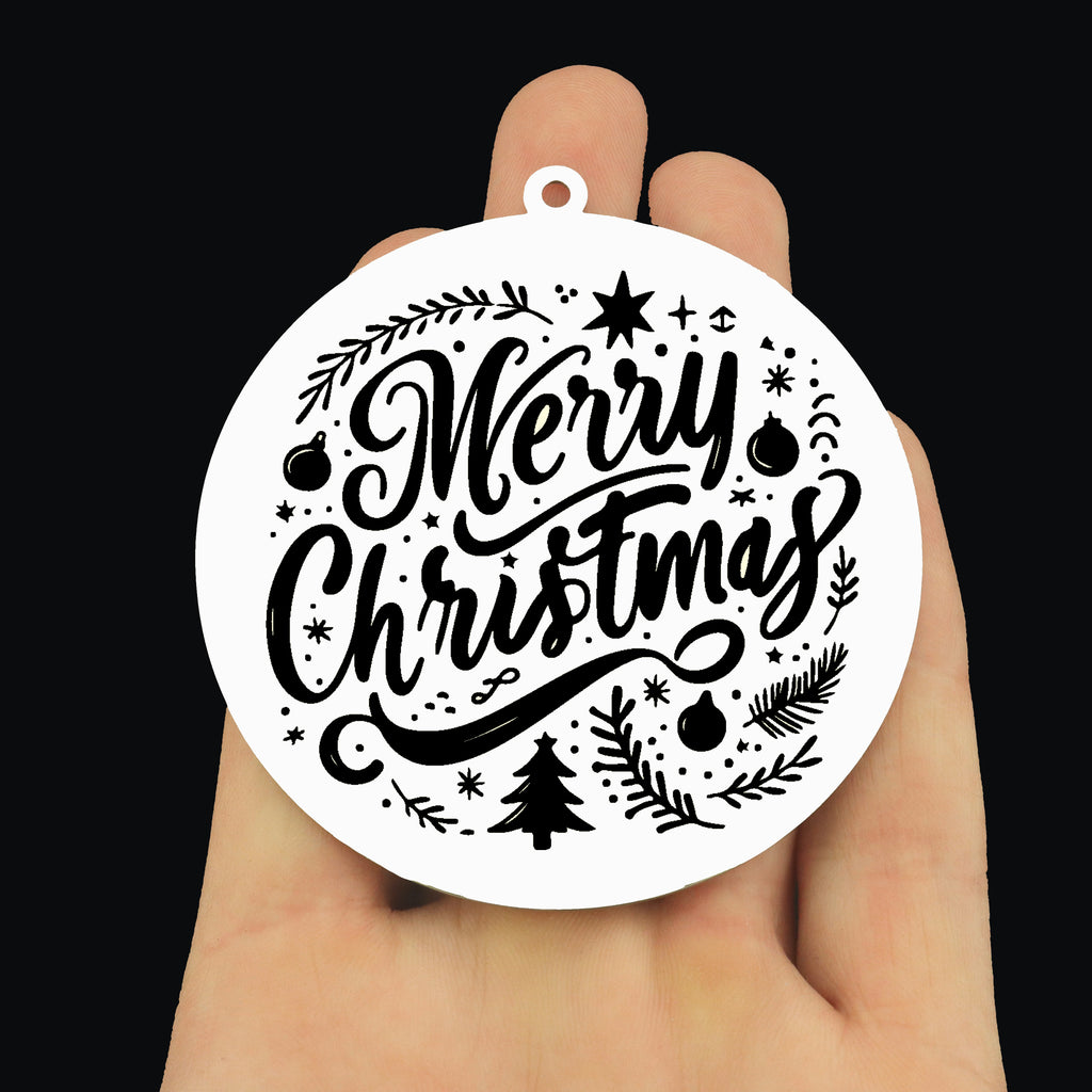Take a look at these custom stainless steel Christmas ornaments! They are laser engraved with "Merry Christmas".