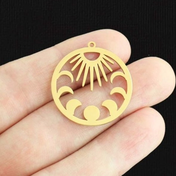 Phases de lune avec breloques soleil doré, en acier inoxydable 201. Parfait pour les bracelets, pendentifs, boucles d'oreilles, tirettes de fermeture éclair, signets et porte-clés !