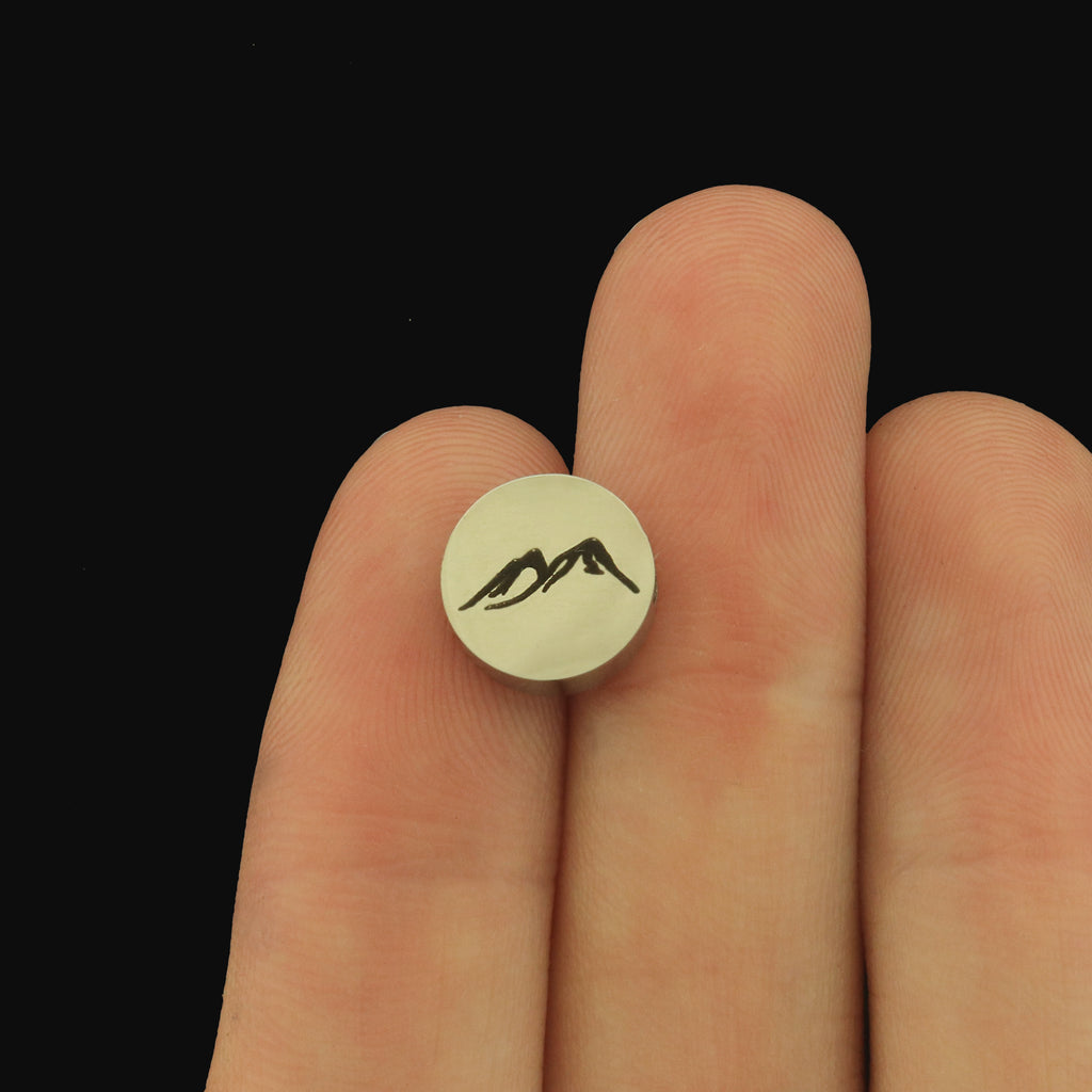 Mountain laser engraved stainless steel beads. Choose from three sizes - 6mm, 8mm, or 10mm! Perfect to add a personalized touch to a beaded bracelet.