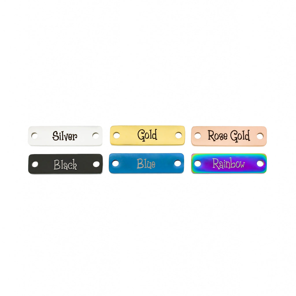 Disponible en finitions argent, or, or rose, noir, bleu et arc-en-ciel. Jetez un œil à la deuxième photo pour des exemples !