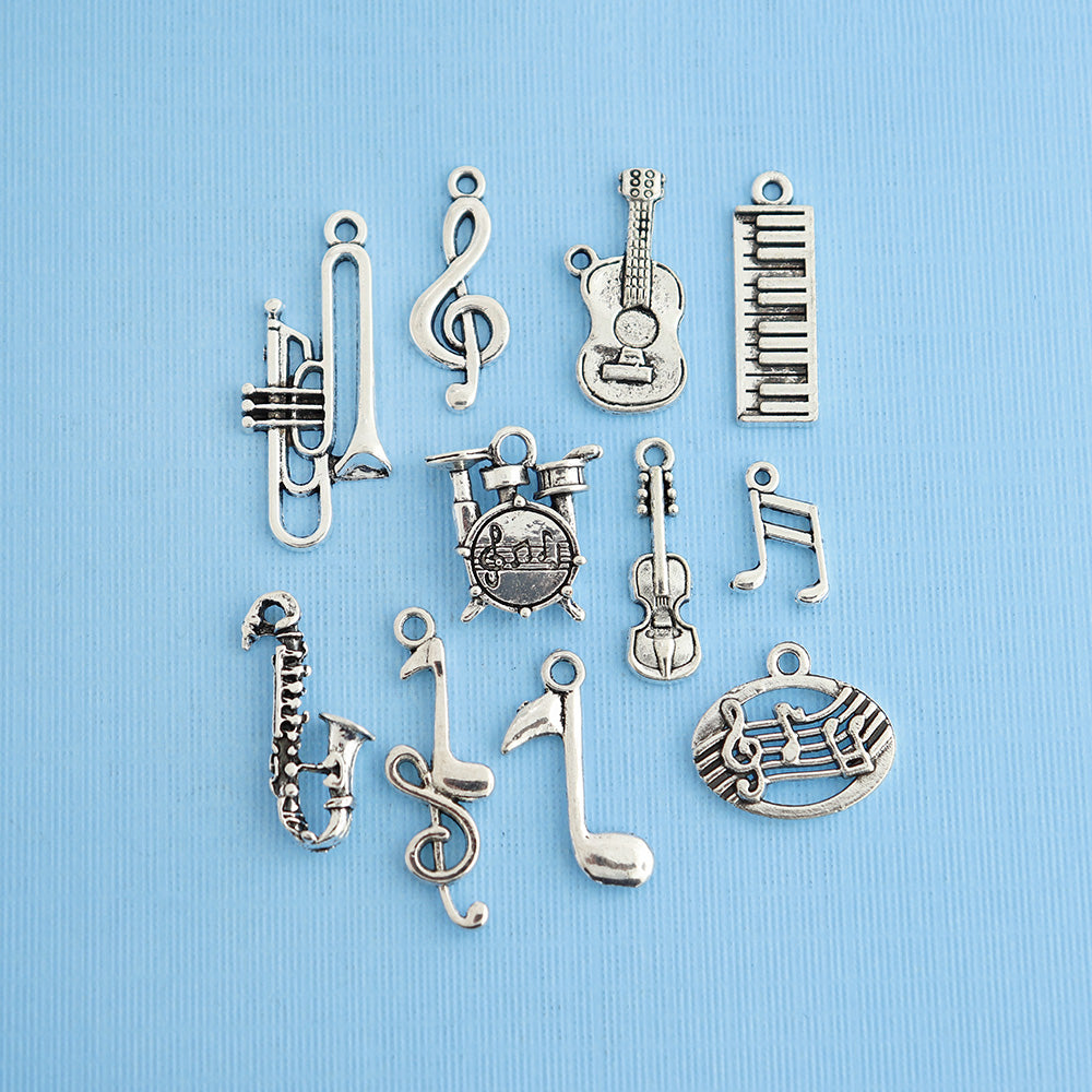 Collection sur le thème de la musique de breloques argentées antiques, dans un métal en alliage de zinc. Parfait pour les bracelets, pendentifs, boucles d'oreilles, tirettes de fermeture éclair, signets et porte-clés !