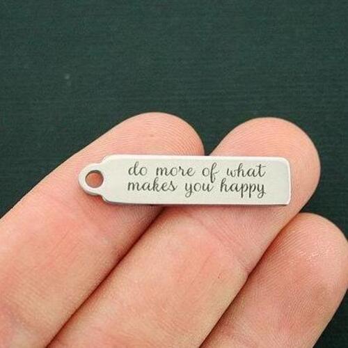 Les breloques sont fabriquées en acier inoxydable de haute qualité, polies à la main des deux côtés. L'acier inoxydable est hypoallergénique et ne ternit pas - y compris les couleurs or, or rose, noir, bleu et arc-en-ciel ! Le design ne se décolore pas, car nous n'utilisons pas de peintures en aérosol ou de produits chimiques dans notre processus de gravure au laser. Nous faisons toute la conception et le laser ici même dans l'Î.-P.-É. rurale !