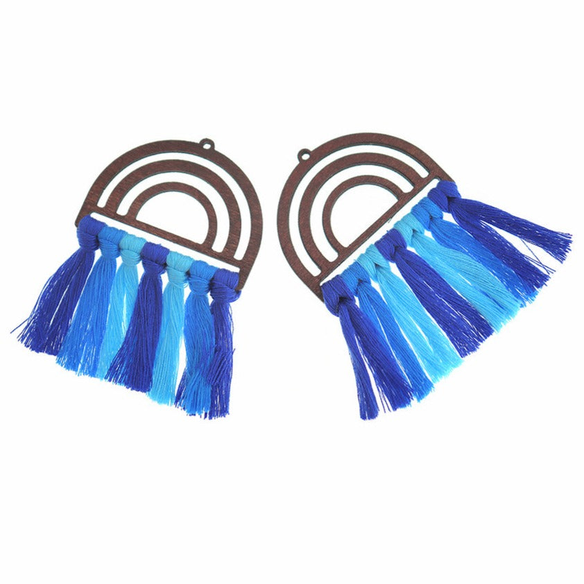Pompons en éventail en coton polyester jaune avec demi-cercle en bois naturel, parfaits pour les boucles d'oreilles, les pendentifs et plus encore !