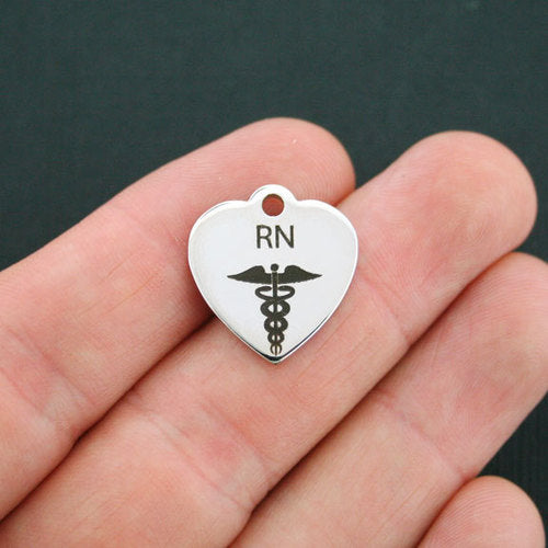Breloques cœur en acier inoxydable gravées au laser "RN" avec un image caducée , de notre ligne exclusive conçue par Bohemian Findings.