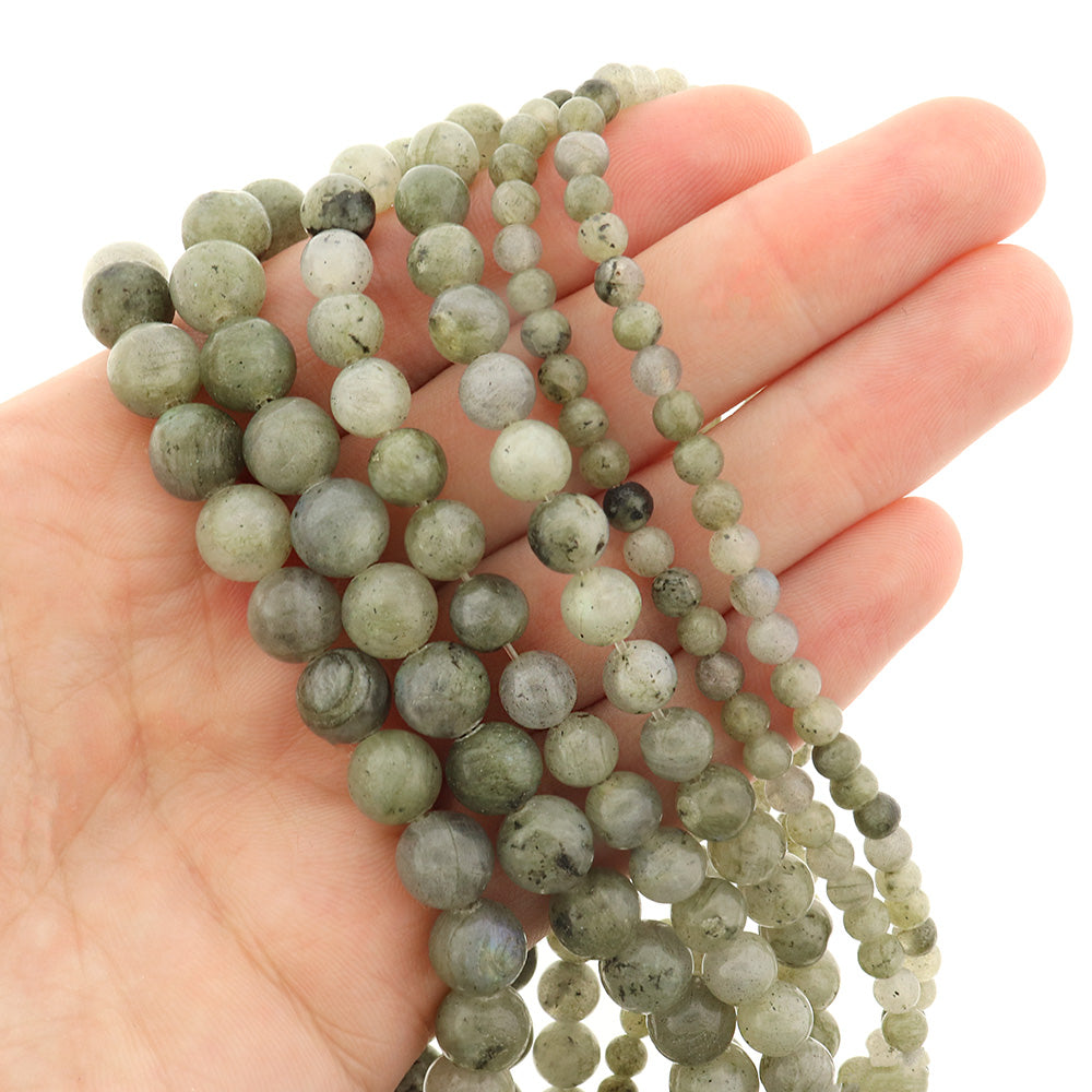 Perles de pierres précieuses de labradorite naturelle grise galvanisées dans un rond de 6 mm, 8 mm, 10 mm ou 12 mm, avec une finition polie. Parfait pour les piles de bracelets, colliers, boucles d'oreilles et bien plus encore.