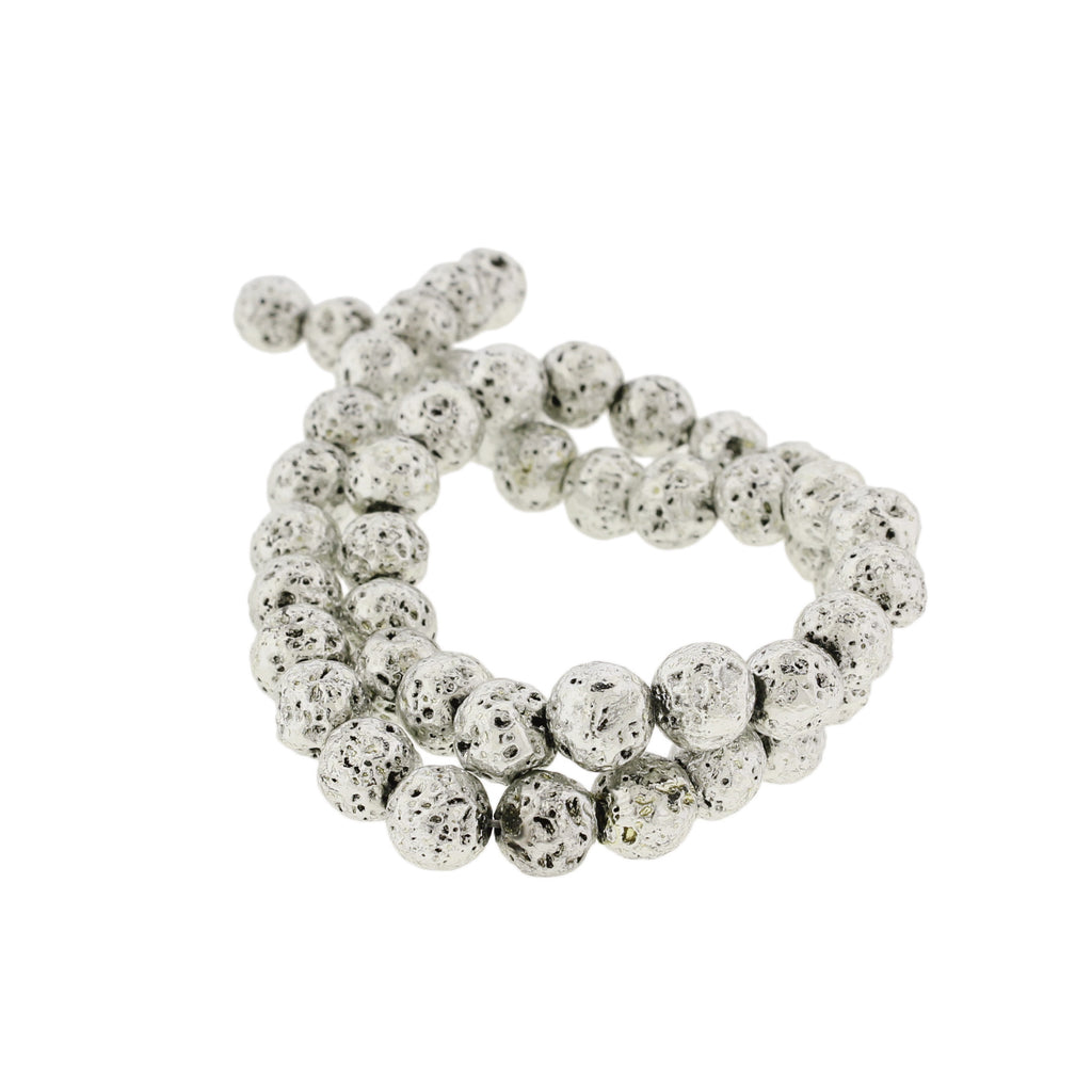 Silver natural lava rock beads in a 8mm round, with a polished finish. Perfect for bracelet stacks, necklaces, earrings, oil and perfume diffusers, and so much more!