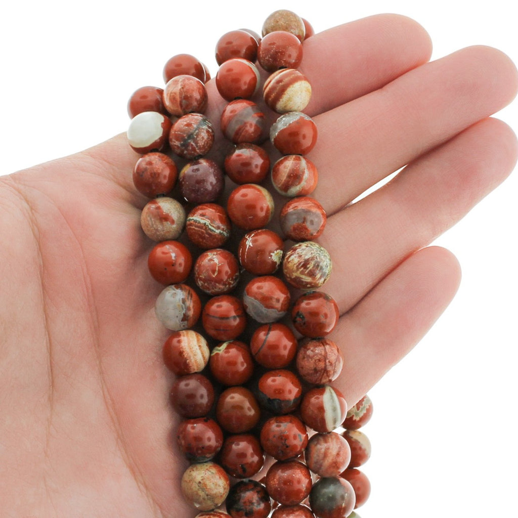 Rouge profond avec des perles de jaspe rouge naturel anthracite et crème dans un rond de 8 mm, avec une finition polie. Parfait pour les piles de bracelets, colliers, boucles d'oreilles et bien plus encore.